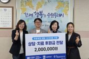 [ 중앙뉴스미디어 ] 수원대학교 공공정책대학원 자원봉사단이 “아동학대 예방과 조기지원 사업 대상자 지원을 위해 사용해달라”며 수원시에 200만 원을 기부했다. 수원시는 아동학대 피해 아동의 심리상담·치료 지원 등 회복 지원을 위해 기부금을 사용할 예정이다. 15일 수원시청에서 열린 기부금 전달식에는 김옥향 수원대 공공정책대학원 자원봉사단장, 김은주 수원시 여성가족국장 등이 참석했다. 김옥향 자원봉사단장은 “이번 후원금 전달은 단체 임원진과 회원들의 따뜻한 마음이 있었기에 가능했다”며 “아동학대 예방과 조기지원 사업 대상자들의 빠른 회복을 위해 의미 있게 사용되길 바란다”고 말했다.