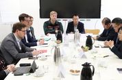 [ 중앙뉴스미디어 ] 성남시는 11월 5일 오전 10시 20분 시청 제1회의실에서 법인택시 노‧사‧정이 함께하는 간담회를 열고, 지역 택시업계의 현안을 공유하며 발전 방향을 논의했다. 이날 간담회에는 신상진 성남시장을 비롯해 전택노련경기동부지역지부 김준희 지부장 등 관계자 12명과 법인택시업체 대표 16명 등 총 30여 명이 참석해 근로환경 개선, 제도적 지원, 운수종사자 복지 확대 방안 등을 폭넓게 논의했다. 신상진 시장은 인사말에서 “경기침체와 인력난 등 어려운 여건 속에서도 시민의 안전한 이동을 위해 헌신하고 있는 택시업계의 노고에 감사드린다”며 “성남시는 업계의 경쟁력 강화와 종사자 복지 향상을 위해 지속적인 지원을 이어가겠다”고 밝혔다. 이날 간담회에서는 법인택시운송사업 발전에 기여한 공로를 인정받아 신상진 성남시장에게 감사패가 전달됐다. 감사패는 △경기도택시운송사업조합(이사장 심재천) △전국택시노동조합연맹 경기지역본부(의장 이용호) △전국민주택시노동조합(의장 이종준)에서 각각 수여했다. 심재천 경기도택시운송사업조합 이사장은 “최악의 경영난을 겪고 있는 택시업계에 감차보상사업과 법인택시 운