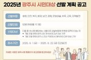 [ 중앙뉴스미디어 ] 광주시는 오는 9월 28일 개최되는 제54회 광주시민의 날을 맞아 ‘2025년 광주시 시민 대상’ 선발 계획을 공고하고 시정 발전에 기여한 시민 공로자를 공개 모집한다고 31일 밝혔다. 이번 시민 대상은 시민의 자긍심과 애향심을 고취하고 지역사회 발전에 헌신한 숨은 인물들을 발굴·포상하기 위한 자리로 ▲효행 ▲안전 ▲복지 ▲환경 ▲보건 ▲경제 ▲문화예술 ▲체육 ▲교육 ▲지역발전 등 총 10개 부문에서 각 1명씩, 총 10명이 선정될 예정이다. 선발 대상은 2025년 7월 31일 기준 광주시에 2년 이상 계속 거주했거나 광주시 지역 내 직장에서 2년 이상 계속 근무 중인 자 중 선발 부문에 뚜렷한 공적이 있는 사람이다. 추천은 4급 이상 공무원, 읍·면·동장, 지역 내 관계기관장 및 사회단체장이 할 수 있으며 광주시민 20명 이상의 연명 추천도 가능하다. 접수기간은 8월 1일부터 8월 22일까지이며 전자 우편, 우편, 방문 접수 모두 가능하다. 접수에 필요한 서류와 자세한 사항은 광주시청 홈페이지 고시·공고란을 통해 확인할 수 있으며 행정지원과로 문의하면 된다. 접수된 후보자들은