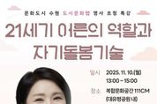 [ 중앙뉴스미디어 ] 수원문화재단이 오는 11월 10일 월요일 오후 1시, 복합문화공간 111CM에서 심리학 전문가 이호선 교수를 초청해 시민 대상 인문심리 특강 “21세기 어른의 역할과 자기돌봄 기술”을 개최한다. 이번 강연은 문화도시 조성사업 중 ‘도시문화랩’의 일환으로 마련됐다. ‘도시문화랩’은 외로움, 고립 등 현대 도시의 사회적 문제를 문화적으로 완화하기 위한 프로젝트로, ‘서로를 살피고 문제에 맞서는 문화도시 수원’이라는 비전을 바탕으로 건강한 도시문화 형성을 위해 다양한 프로그램을 운영하는 사업이다. 11월 특강에서는 세대 간 이해, 올바른 상호 소통법, 마음건강 관리법 등을 다룰 예정이다. 이호선 교수는 숭실사이버대학교 교수이자 한국노인상담센터 센터장으로, JTBC '이혼숙려캠프', tvN '어쩌다 어른' 등 다수의 방송을 통해 대인관계와 심리 건강의 중요성을 알리며 대중적 신뢰를 쌓아온 심리학자다. 이번 강연에서는 급변하는 세대를 살아가는 어른으로서의 역할과 책임, 그리고 스스로를 돌보며 건강하게 관계를 이어가는 방법을 심리학적으로 풀어낸다. 수원문화재단 관계자는 “이번 도시문화랩 명사초청 특강