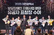 [ 중앙뉴스미디어 ] 대전시는 대전광역시발달장애인지원센터와 함께 28일 오후 2시 TJB 대전방송 공개홀에서'2025년 발달장애인 지원사업 성과 공유대회'를 개최했다. 이번 행사는 최성아 대전시 정무경제과학부시장, 조원휘 대전시의회 의장을 비롯한 발달장애인 당사자와 가족, 지원기관 종사자 등 100여 명이 참석한 가운데 유튜브를 통해 실시간 생중계됐다. 성과공유대회에서는 최중증 발달장애인 통합돌봄서비스 이용자의 서비스 참여 이후 일상생활 회복과 가족 돌봄 부담이 완화된 사례가 영상으로 소개됐다. 주제강연에서는 ▲김대용 건양대병원 발달장애인 거점병원 행동발달증진센터 부센터장이‘행동발달증진센터의 역할’▲김동기 목원대학교 사회복지학과 교수가‘개별 계획수립 및 평가 도구 개발’▲김민영 건양사이버대교 보건복지대학원 응용행동분석학과 교수가‘지원기관과 종사자 역량 개발을 통한 서비스 질 향상’ 발표가 있었다. 또한 ▲박정은 대전발달센터장이‘사각지대 발달장애인 발굴 조사’결과 ▲동그라미심리상담센터 유재진 종사자의‘발달장애청소년의 지역사회 자립준비 지원’사례도 우수사례로 발표됐다. 아울러 발달장애인 지