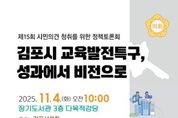 [ 중앙뉴스미디어 ] 김포시의회는 김포시 교육발전특구의 추진 성과를 점검하고 향후 비전과 정책 방향을 모색하기 위해 오는 11월 4일 장기도서관 3층 다목적강당에서 정책토론회를 개최한다. 이번 토론회는 ‘김포시 교육발전특구, 성과에서 비전으로’라는 주제로, 지역 교육 관계자와 전문가, 시민이 함께 참여해 교육발전특구 추진 성과를 돌아보고, 미래 교육도시로의 발전 전략을 논의하기 위해 마련됐다. 주제 발제는 협성대학교 교육대학원 김성기 교수가 맡았으며, '김포시 교육발전특구 발전방향'에 대해 발표 후 토론이 진행된다. 토론 좌장은 김현주 의원(김포시의회), 패널로는 김지원 장학사(경기도김포교육지원청), 허철규 교장(마송중·고등학교), 오은화 팀장(김포시 교육문화국), 김민정 회장(김포시학부모회장협의회)이 참여한다. 김현주 의원은 “김포시가 3040 젊은 세대와 아동인구 비율이 높고 성장 잠재력이 높은 도시인 만큼, 교육이 도시 경쟁력의 핵심이 되어야 한다”며, “이번 토론회를 통해 김포형 교육발전특구가 실질적인 교육 혁신의 플랫폼으로 발전할 수 있도록 시민, 교육계, 행정이 함께 지혜를 모으는 계기가 되길 바란다