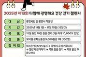 [ 중앙뉴스미디어 ] 광명시는 시민들의 건강한 생활습관 형성과 걷기 문화 확산을 위해 ‘제13회 다함께 광명해요 건강 걷기 챌린지’를 진행한다. 이번 챌린지는 오는 11월 1일부터 15일까지 15일간 열리며, 광명시민과 광명시에 소재한 직장인이면 누구나 참여할 수 있다. 참가자는 기간 동안 총 10만 보를 걸으면 되며, 1일 최대 1만 보까지만 인정된다. 참여 방법은 간단하다. 10월 29일부터 워크온(WalkOn) 앱을 설치하고 광명시 공식 커뮤니티에 가입한 뒤 ‘제13회 건강 걷기 챌린지 참여하기’를 눌러 걷기를 시작하면 된다. 단, 목표 걸음을 달성한 시민은 ‘응모하기’ 버튼을 눌러 참여를 완료하면 된다. 누적 걸음 수 목표를 달성한 참여자 중 추첨으로 100명에게 모바일 문화상품권 5천 원권 1매를 지급한다. 당첨자 발표와 상품 지급은 11월 17일부터 11월 21일까지 진행할 예정이다. 나기효 건강위생과장은 “매회 많은 시민이 참여하는 ‘다함께 광명해요 건강 걷기 챌린지’는 일상 속 건강한 습관을 형성할 좋은 기회다”며 “시민들이 걷기를 통해 건강도 챙기고, 작은 선물도 받아가