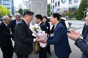 [ 중앙뉴스미디어 ] 김천시는 10월 15일 김천시청 3층 강당에서 ‘김천시-나나오시 자매결연 50주년 기념식’을 개최했다. 1975년 자매도시 결연 이후 50년간 이어온 양 도시의 우정과 협력의 발자취를 되새기고, 미래 지향적 교류 발전을 다짐하기 위해 나나오시에서는 차타니 요시타카 시장을 단장으로 다케모토 분페이 나나오- 前시장, 민간교류단체 대표 등 15명이 방문했다. 이날 기념행사는 양 시 시장 및 대표단이 참석한 가운데, 김천시립교향악단의 축하공연, 교류발전 공동선언문 서명식, 핸드프린팅, 기념품 교환, 기념 촬영 순으로 진행됐다. 차타니 요시타카 나나오시장은 “지난 반세기 동안 양 시가 서로를 이해하고 신뢰를 쌓아온 것은 매우 소중한 자산”이라며, “앞으로도 김천시와의 돈독한 유대를 기반으로 시민 간 교류를 더욱 넓혀가겠다.”라고 말했다. 이에 배낙호 시장은 “50년이라는 세월 동안 양 도시의 교류는 단순한 자매결연을 넘어 진정한 우정의 상징이 됐다.”라며, “이번 50주년을 새로운 출발점으로 삼아 다양한 분야에서의 교류를 한층 확대해 나가겠다.”라고 화답했다. 김천시와 나나