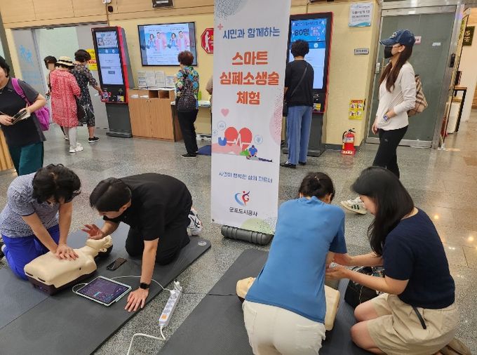 [ 중앙뉴스미디어 ] 군포도시공사(사장 배재국)는 지난 9일 ‘산업안전보건의 달’을 맞이하여군포국민체육센터에서'건강올리GO, 마음채우GO 체험부스'를 운영했다.