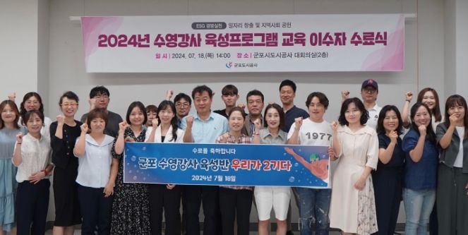 [ 중앙뉴스미디어 ] 군포도시공사는 지난 18일 본사 2층 대회의실에서 제2기 수영강사 육성 프로그램 수료식을 진행했다.