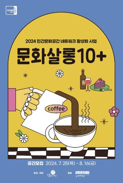 '문화살롱10+'는 공방, 카페, 서점, 연습실, 갤러리 등 군포시 관내 민간문화공간을 발굴하고 공간 운영자가 직접 문화 프로그램을 기획하고 운영하여 지역 주민의 커뮤니티 활동을 촉진시키는 사업이다.