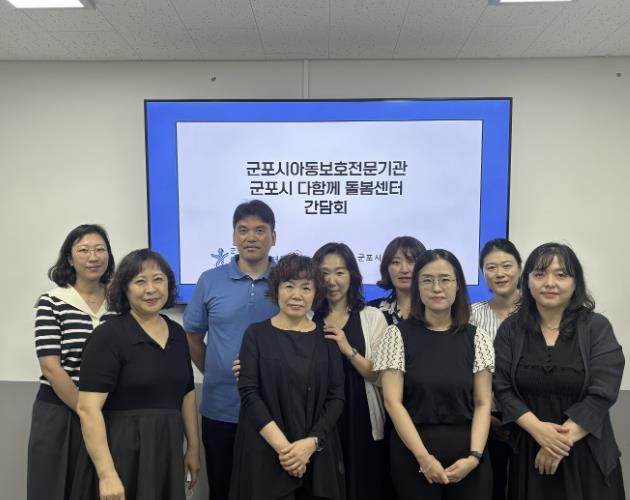 [ 중앙뉴스미디어 ] 8월 21일 군포시아동보호전문기관은 군포시 다함께돌봄센터 숲속반디채점(1호점), 옥천마을점(2호점), 군포1동점(5호점), 산본2동점(6호점), 금강펜테리움 3차점(7호점), 가족센터점(9호점), 송부종합복지관점(10호점) (순서대로 유지현 센터장, 김민정 센터장, 노부용 센터장, 이승희 센터장, 전미진 센터장, 방희정 센터장, 강문정 센터장)와 함께 아동학대예방 및 아동권리증진을 위한 간담회를 가졌다.