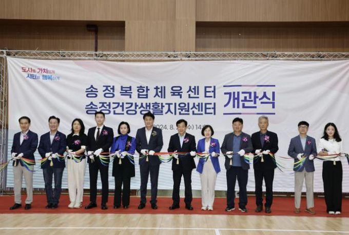 [ 중앙뉴스미디어 ] 경기 군포시는 지난 8월 28일 송부동에 위치한 송정복합체육센터에서 시장, 시의회의장, 도의원, 시의원, 송부동 직능단체장, 지역주민 등 100여 명이 참석한 가운데 송정복합체육센터와 송정건강생활지원센터 개관식을 개최했다.