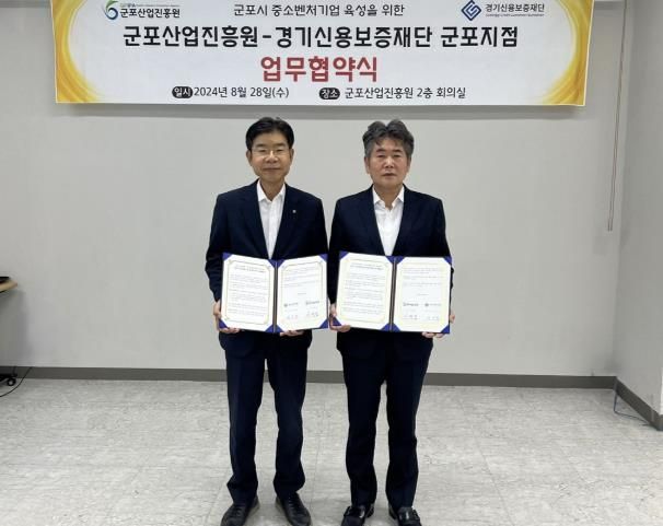 [ 중앙뉴스미디어 ] 군포산업진흥원은 지난 28일 ‘군포시 혁신 중소벤처기업 발굴과 육성’을 위해 경기신용보증재단 군포지점과 업무협약을 체결했다고 밝혔다.