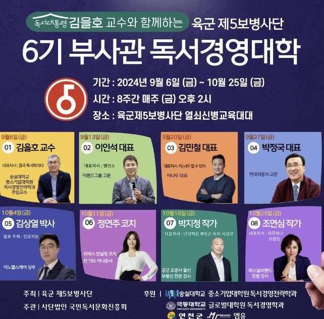 부사관 독서경영대학 6기는 9월 6일부터 10월 25일까지 총 8차시에 걸쳐 진행될 예정이다.