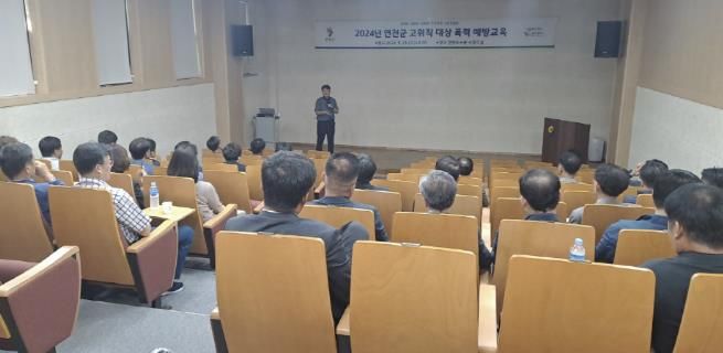 [ 중앙뉴스미디어 ] 연천군은 25일 연천도서관 시청각실에서 군수를 포함한 5급 이상 고위직 공무원, 군의회 의원, 산하기관장을 대상으로 맞춤형 폭력예방교육을 실시했다.