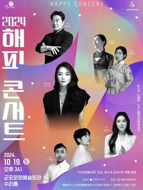 [ 중앙뉴스미디어 ] 군포문화재단은 가을 국악공연 ‘2024 해피콘서트’를 오는 19일 군포문화예술회관 수리홀에서 진행한다.