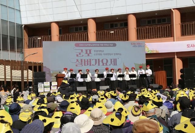 [ 중앙뉴스미디어 ] 군포시늘푸른노인복지관은 10월 16일 군포시늘푸른노인복지관 개관9주년을 기념하여 원광대학교 산본병원·치과병원과 함께하는 군포실버가요제를 복지관 열린광장에서 지역주민과 지역어르신 약1,500명이 함께하며 성황리에 개최되었다.