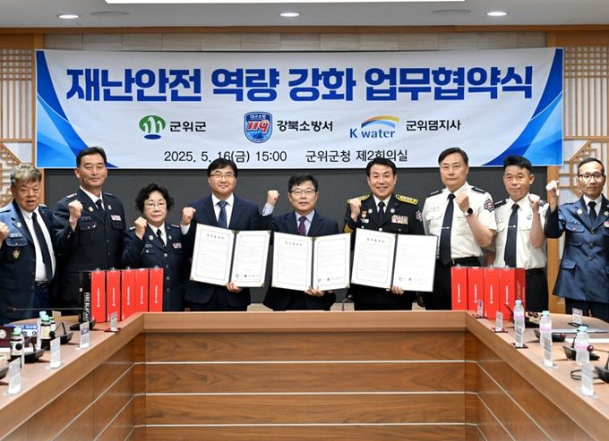 김진열 군위군수는 “이번 협약을 통해 세 기관이 함께 힘을 모아 재난대응을 위한 실질적인 지원 체계를 마련하게 된 것은 매우 뜻깊은 일이다”며 “앞으로도 기관간에 상호 협력체계를 강화하고, 국민의 생명과 자산을 보호하는 데 최선을 다하겠다.”고 말했다.