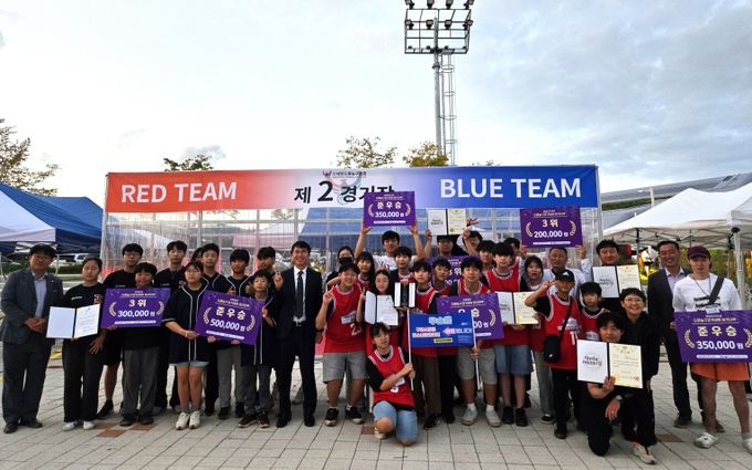 드론농구는 3명의 선수가 한 팀을 이뤄 탄소소재 보호 장구를 두른 농구공 모양의 드론을 조종해 골대에 득점하는 차세대 스포츠다. 섬세한 조종 기술과 빠른 판단력, 팀워크가 필수적이다. 이번 대회에서구미 청소년들은 창의적인 전략과 집중력으로 강팀들과의 치열한 경쟁을 뚫고 관람객들의 큰 호응을 얻었다.