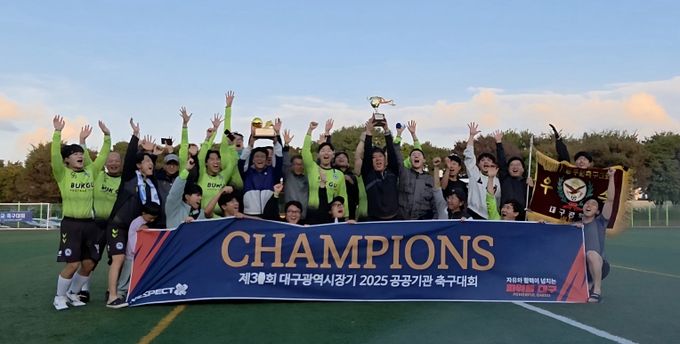 [ 중앙뉴스미디어 ] 대구 북구청 축구동호회가 지난 10월 25일 열린 제31회 대구시장기 공공기관 축구대회 결승전에서 대구광역시청을 3:2로 꺾고 1997년 제7회 대회 이후 28년여 만에 우승을 차지했다.