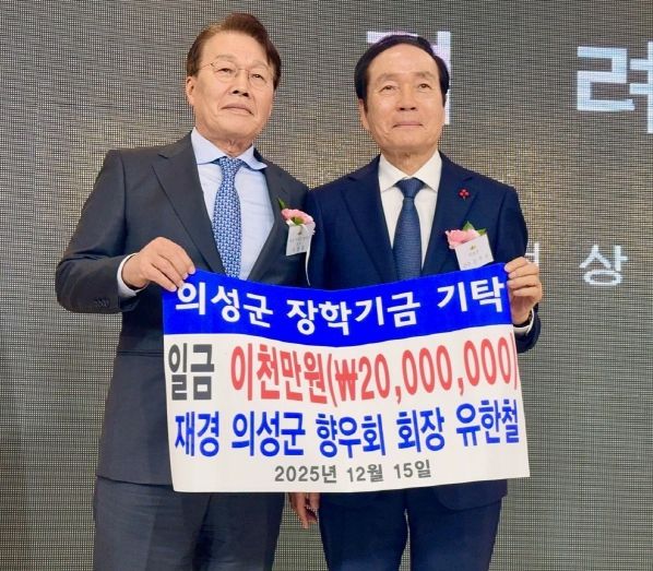 [ 중앙뉴스미디어 ] 재단법인 의성군인재육성재단(이사장 김주수 의성군수)은 지난 15일 재경의성군향우회 유한철 회장(서울승합 대표)이 지역 인재 육성을 위해 사용해 달라며 장학금 2천만 원을 의성군에 전달했다고 밝혔다.