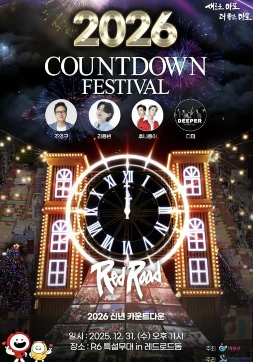 마포구는 2025년의 마지막 밤, 새로운 한 해의 시작을 구민과 함께 맞이하기 위해 12월 31일 레드로드 R6 에어돔 일대에서 ‘2026 레드로드 카운트다운 페스티벌’을 개최한다.