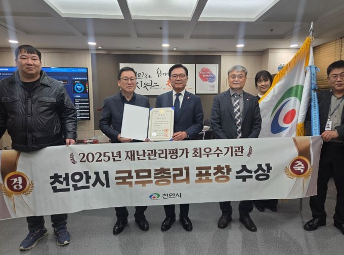 [ 중앙뉴스미디어 ] 천안시가 행정안전부 주관 ‘2025년 재난관리평가’에서 우수기관에 선정돼 국무총리 표창을 받았다고 23일 밝혔다.