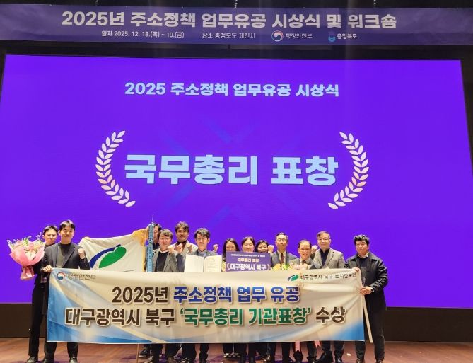 [ 중앙뉴스미디어 ] 대구 북구청은 2025년 주소정책을 성공적으로 추진한 공로를 인정받아 국무총리 기관 표창을 수상했다.