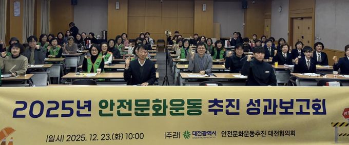 [ 중앙뉴스미디어 ] 대전시는 23일 대전시청 세미나실에서 안전문화운동추진 대전협의회 소속 기관 및 단체 관계자 100여 명이 참석한 가운데 2025 안전문화운동 추진 성과보고회를 개최했다.