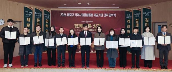 대덕구는 23일 지역 통합돌봄 서비스 제공기관 13곳과 업무협약을 체결하고, 2026년 통합돌봄사업의 안정적 운영을 위한 민·관 협력 체계를 본격 가동한다고 밝혔다.