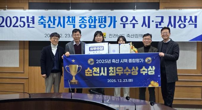 [ 중앙뉴스미디어 ] 순천시는 2025년 전라남도 축산시책 종합평가에서 최우수상을 수상했다고 23일 밝혔다.