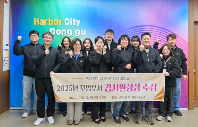 [ 중앙뉴스미디어 ] 부산 동구는 안전예방과가 감사원으로부터 모범부서로 선정돼 지난 19일 감사원에서 열린 2025년도 모범사례 포상행사에서 감사원장 표창을 받았다고 밝혔다.