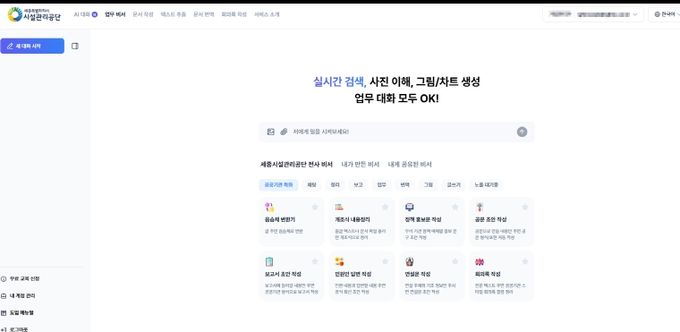 세종시설공단은 기존 부서별ㆍ개인별로 구독해서 사용하는 방식은 예산·계정 관리 비효율과 기밀정보 유출 등 정보보안 우려가 있어 인공지능 통합 플랫폼 구축을 추진하게 됐다.