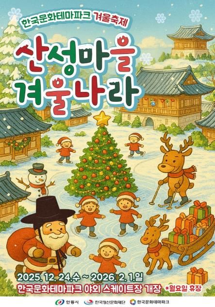 [ 중앙뉴스미디어 ] 안동시와 한국정신문화재단은 한국문화테마파크에서 12월 24일부터 2026년 2월 1일까지 크리스마스와 겨울을 주제로 한 ‘산성마을 겨울나라’ 행사를 한국문화테마파크 일원에서 개최한다고 밝혔다.