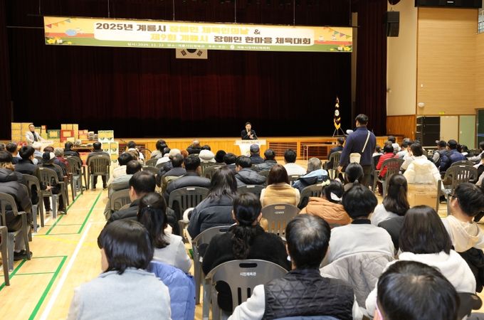 [ 중앙뉴스미디어 ] 계룡시는 23일 계룡시민체육관에서 장애인 체육 종목단체 선수, 임원 등 250여 명이 참석한 가운데 ‘2025 장애인 체육인의 날 및 한마음 체육대회’를 성황리에 개최했다.