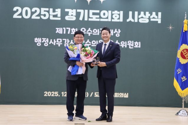 [ 중앙뉴스미디어 ] 경기도의회 교육기획위원회 이택수 의원(국민의힘, 고양8)과 성기황 의원(더불어민주당, 군포2)이 26일 열린 2025년 경기도의회 시상식에서 ‘2025년 행정사무감사 우수위원’으로 선정됐다.