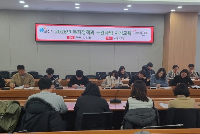 [ 중앙뉴스미디어 ] 포천시는 지난 5일 시청 시정회의실에서 14개 읍면동 사회복지 업무담당자 62명을 대상으로 ‘2026년 복지정책과 소관사업 신설 및 개정사항 지침교육’을 실시했다.
