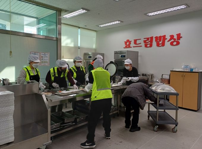 김포시종합사회복지관에서는 어르신들이 편안하게 식사할 수 있도록 매일 20여 명의 자원봉사자가 식사 도우미와 안내를 지원하고 있다. 사업 첫날부터 어르신들은 질서를 지켜 차례를 기다리며 이웃과 담소를 나누는 등 안정적인 분위기 속에서 식사를 즐겼다.