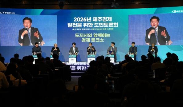 제주도와 제주상공회의소는 9일 오후 2시 한라컨벤션센터에서 ‘2026년 제주경제 발전을 위한 도민토론회’를 열었다.