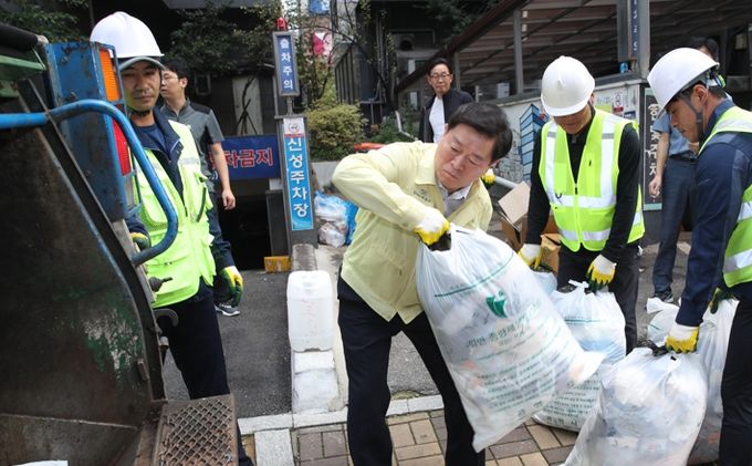 이날 박승원 시장은 소하동 일대 생활쓰레기 수거 현장에서 환경미화원들과 함께 쓰레기를 일일이 수거했으며, 광명시 재활용쓰레기 선별장을 찾아 환경미화원들에게 감사 인사를 전하고 불편 사항 등을 청취하며 소통하는 시간을 가졌다.