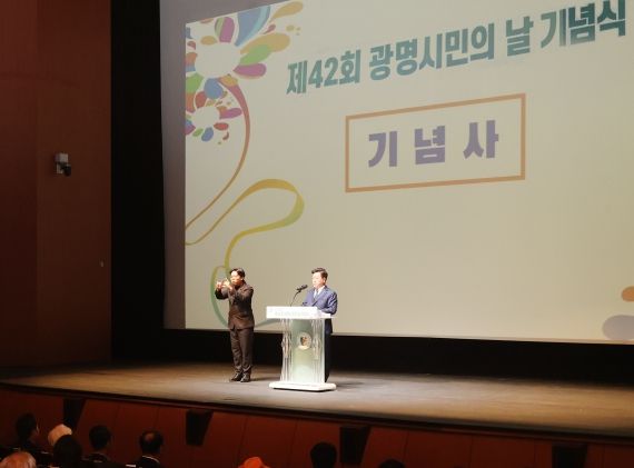 기념식은 광명시립합창단 축하공연과 국악퓨전밴드의 흥겨운 공연으로 막을 올렸고, 광명시민으로 살아가는 보람과 행복을 담은 시민들의 영상인터뷰 ‘광명에서 행복하세요?’가 상영돼 기념식에 의미를 더했다. 시민헌장 낭독과 김동연 경기도지사, 권익현 부안군수, 김창규 제천시장의 영상 축하 메시지도 이어졌다.
