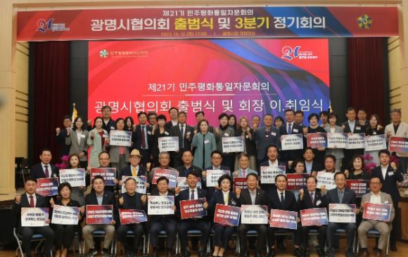 [ 중앙뉴스미디어 ] 민주평화통일자문회의 경기광명시협의회는 10월 12일(목) 5시 광명시청 대회의실에서 박승원 광명시장, 안성환 광명시의장, 국회의원 및 기관 단체장이 참석한 가운데 제21기 출범식을 갖고 54명의 자문위원들과 함께 평화통일을 위한 힘찬 발걸음을 시작했다.