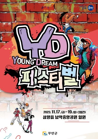 [ 중앙뉴스미디어 ] 청춘의 꿈을 응원하고 지원하는 청년도시 무안군이 오는 11월 17일부터 19일까지 3일동안 무안YD(Young Dream) 페스티벌을 남악중앙공원 일원에서 개최한다고 밝혔다.