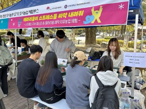 전주시농업기술센터는 18일 전북대학교 영농창업특성화사업단 1학년 학생들이 전북대 캠퍼스에서 도시농업 체험부스를 운영했다고 밝혔다.