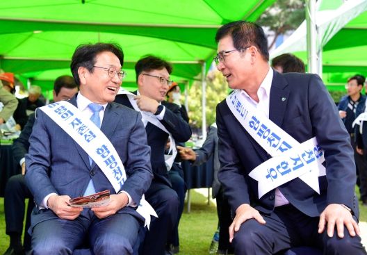 강기정 광주시장은 “시청 앞 광장에서 많은 시민들이 함께할 수 있는 상생의 자리를 마련해주셔서 감사하다”며 “함평과 광주는 경제공동체다. 두 지역에 걸쳐있는 빛그린산단이 있고 빛그린산단은 미래차국가산단, 진곡산단과 더불어 미래차 소부장특화단지로 지정됐다. 이처럼 이미 끈끈히 묶여있는 함평과 광주는 경제공동체로 함께 더욱 상생·발전해 나가겠다”고 말했다.