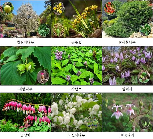 전북 진안군에 위치한 산림환경연구소는 지난 2019년부터 올해까지 인근 주요 산(마이산, 덕태산, 내동산 등)의 식물자원 조사를 수행하면서 촬영한 금붓꽃, 줄사철나무, 청실배나무 등 25종을 선정해 잎·꽃·열매 등의 아름다운 사진과 큰꽃으아리, 붉은병꽃나무, 산조팝나무 등 식물표본 18점을 전시할 예정이다.