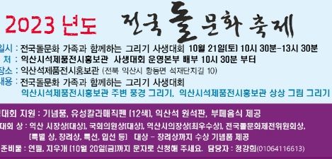 전국돌문화 축제제전위원회에서 주최하는 이번 행사는 ‘천년 돌의 향기가 꽃피는 익산석 이야기’라는 주제로 진행된다.
