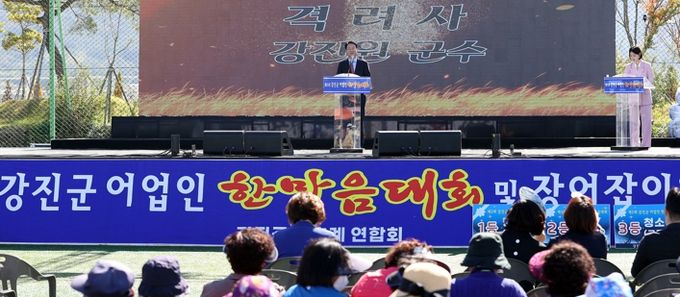 강진군 어촌계연합회가 주관한 이번 대회는 강진원 강진군수를 비롯해 김보미 강진군의회 의장, 김승남 국회의원의 배우자 김선미 여사, 전서현 전남도의원 등 각계 인사와 어촌계연합회원 등 어업인 300여 명이 참석했다.