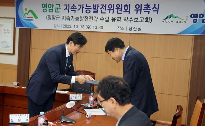 [ 중앙뉴스미디어 ] 영암군이 18일 군청에서 ‘영암군지속가능발전위원회’ 위원 위촉식과 ‘지속가능발전 전략 수립 용역 착수보고회’를 개최했다.