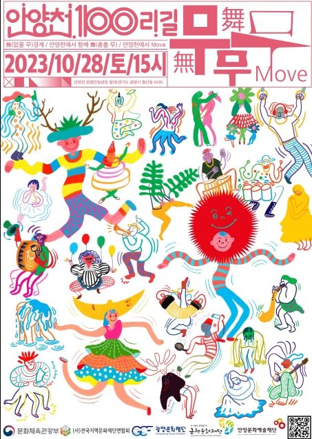 ‘안양천 100리길, 무무무(無舞Move)’는 문화체육관광부와 전국지역문화재단연합회가 주최·주관하는 ‘2023 문화가 있는 날-지역 간 연계·협력 사업’이며, 해당 사업은 광명문화재단과 금천문화재단, 안양문화예술재단이 함께 운영하며, 지난 5월과 8월에 문화가 있는 날 주간에 맞춰 안양천을 중심으로 지역주민을 위한 다채로운 문화행사를 선보였다.