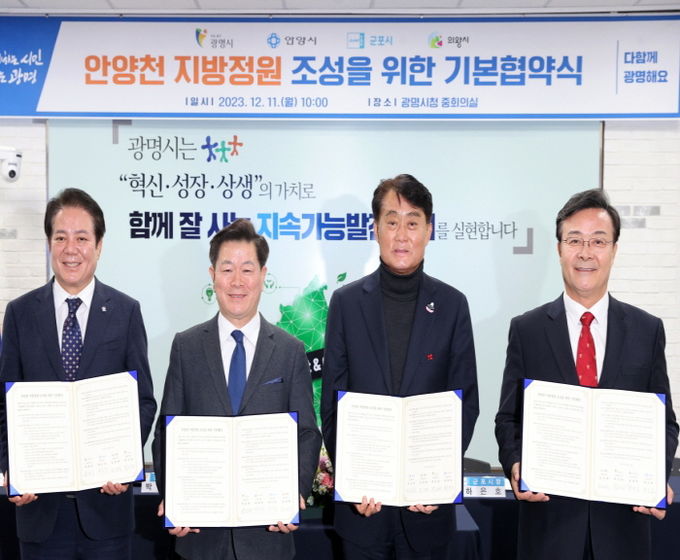 협약은 안양천 지방정원의 효율적 시행을 위해 4개 자치단체 간 재원조달 등 상호 협력과 업무 수행에 필요한 사항을 담았다.