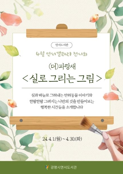 [ 중앙뉴스미디어 ] 광명시 연서도서관은 실과 바늘로 그려낸 작품을 만나는 4월 연서 갤러리 전시회를 진행한다.
