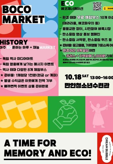 [ 중앙뉴스미디어 ] 안양시청소년재단 소속 만안청소년수련관은 오는 10월 18일 청소년과 시민이 함께하는 ‘환경과 역사를 잇다 - BOCO MARKET & E-G 페스티벌’을 개최한다고 15일 밝혔다.
